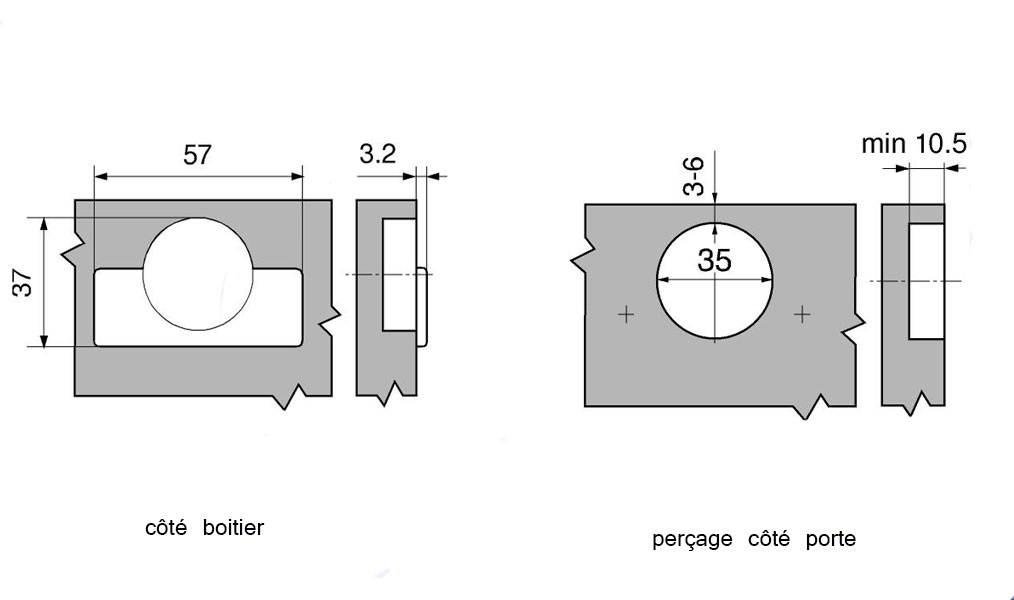 Charnière Modul invisible standard, pour porte jumelée