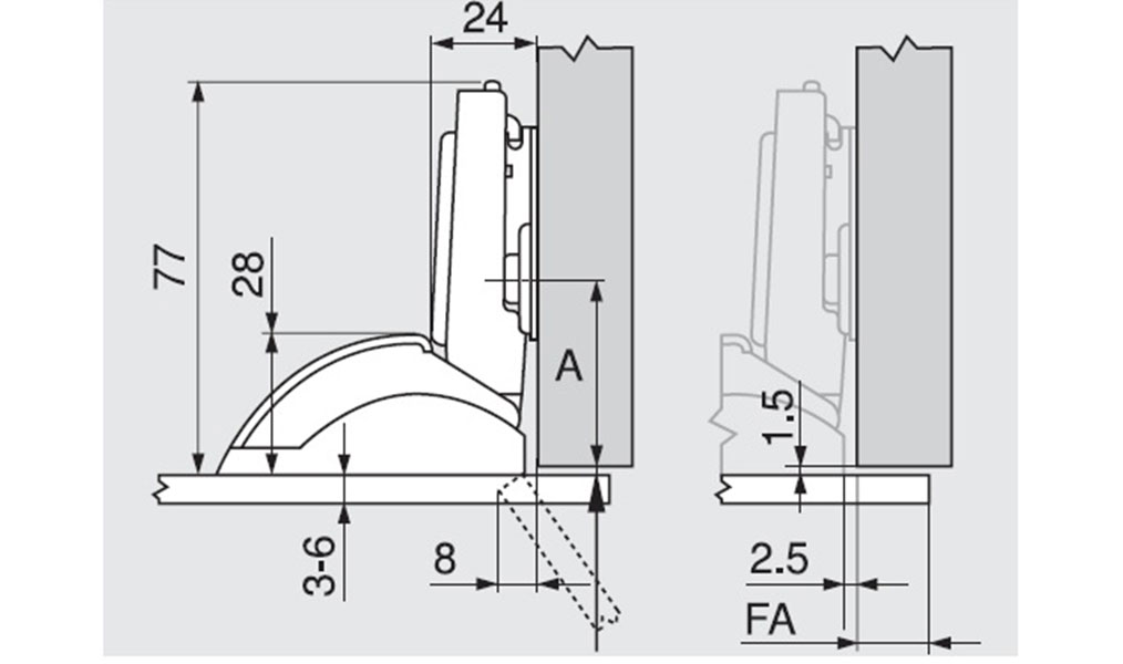 Réglage en profondeur : + 3/- 2 mm, confortable avec vis sans fin