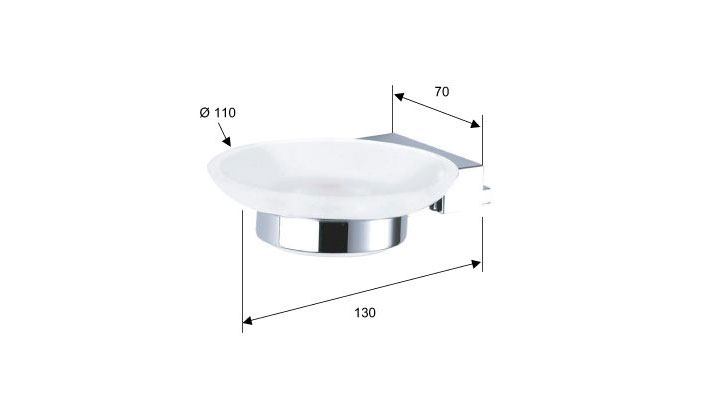 Collection : SQ Référence : SQ 10 Finition : Porte savon en verre sablé blanc avec support chromé