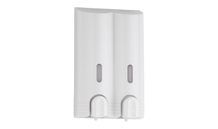 Finition : Distributeur double pour liquide avec le système de verrouillage de sécurité, tout blanc